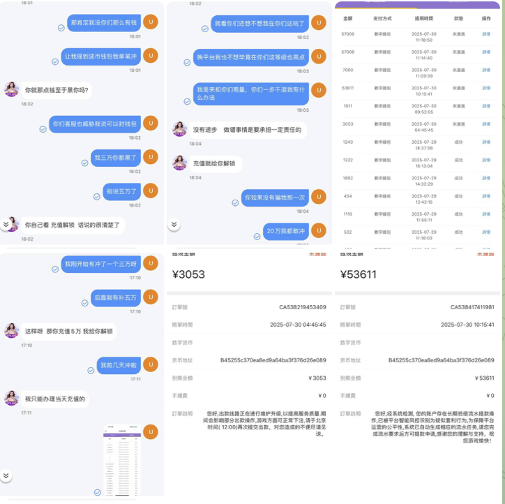 本人在这个平台80级账户这个黑平台黑我20万,y刚开始我赢了8万不给出,忽悠我叫保证金刚开始叫我交三万保证金我交了说给我处理,我交了直接给我划扣 ,后面又各种理由不给我出款,因为这个平台我玩了挺久以前单笔十几万也给我出了,后面也介绍了几个朋友来玩,我咬咬牙又冲了五万保证金,现在各种理由不给我退被划扣的钱,连我充值的打够流水也不给我退!钱没被卡住的时候他们客服态度各种好,一被卡住态度敷衍,他们客服使用的是萤火虫软件,里面的钱我也不要了,只是被陆陆续续恶心了一个月搞得我很不舒服,曝光出来给大家避雷。官方网站:371.gg,xx1.my,xx30.my